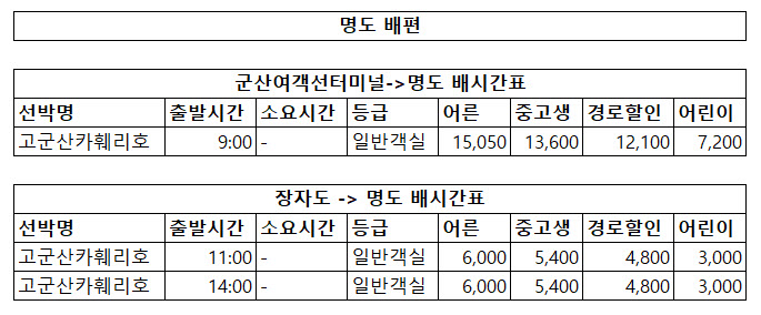 군산 연도 배시간표, 연도 배편요금, 배편차량선적요금 완벽정리