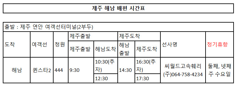 제주 해남 배편 시간표 |