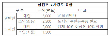 사량도 배편(고성 용암포항->사랑도 내지항)