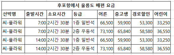 | 후포항에서 울릉도 배편 요금 | |||||||