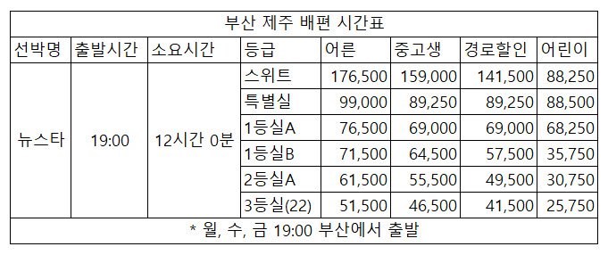 부산항 제주도 배편 시간표는 다음과 같습니다.
