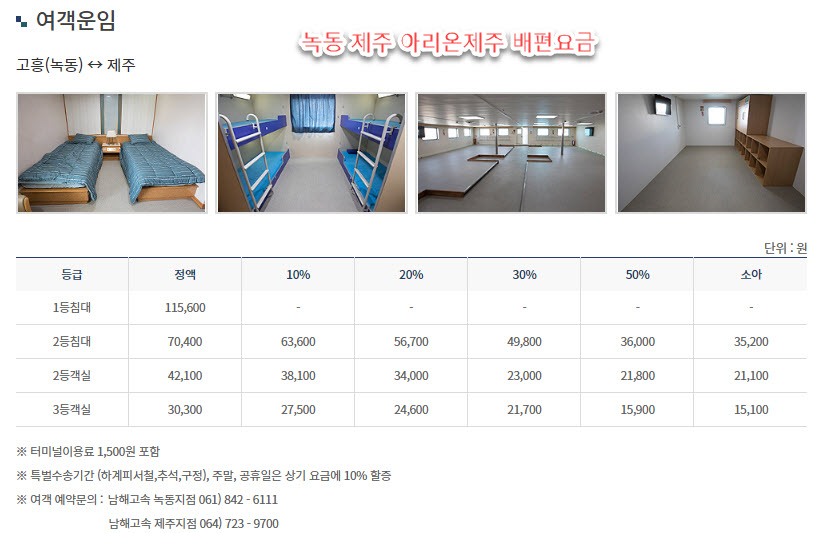 녹동 제주도 배편 요금은 다음과 같습니다.