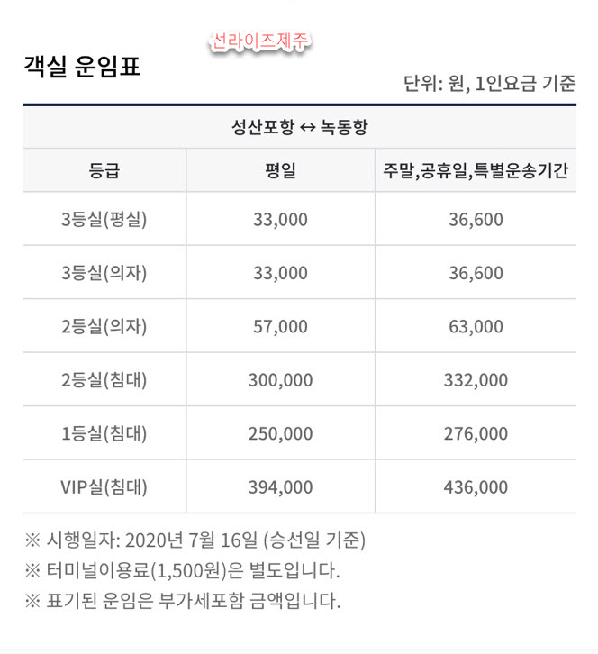선라이즈 제주(녹동여객선터미널->제주도 성산포항) 제주도 배편 시간표 |