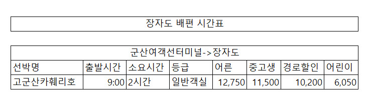 군산여객선터미널->장자도 |